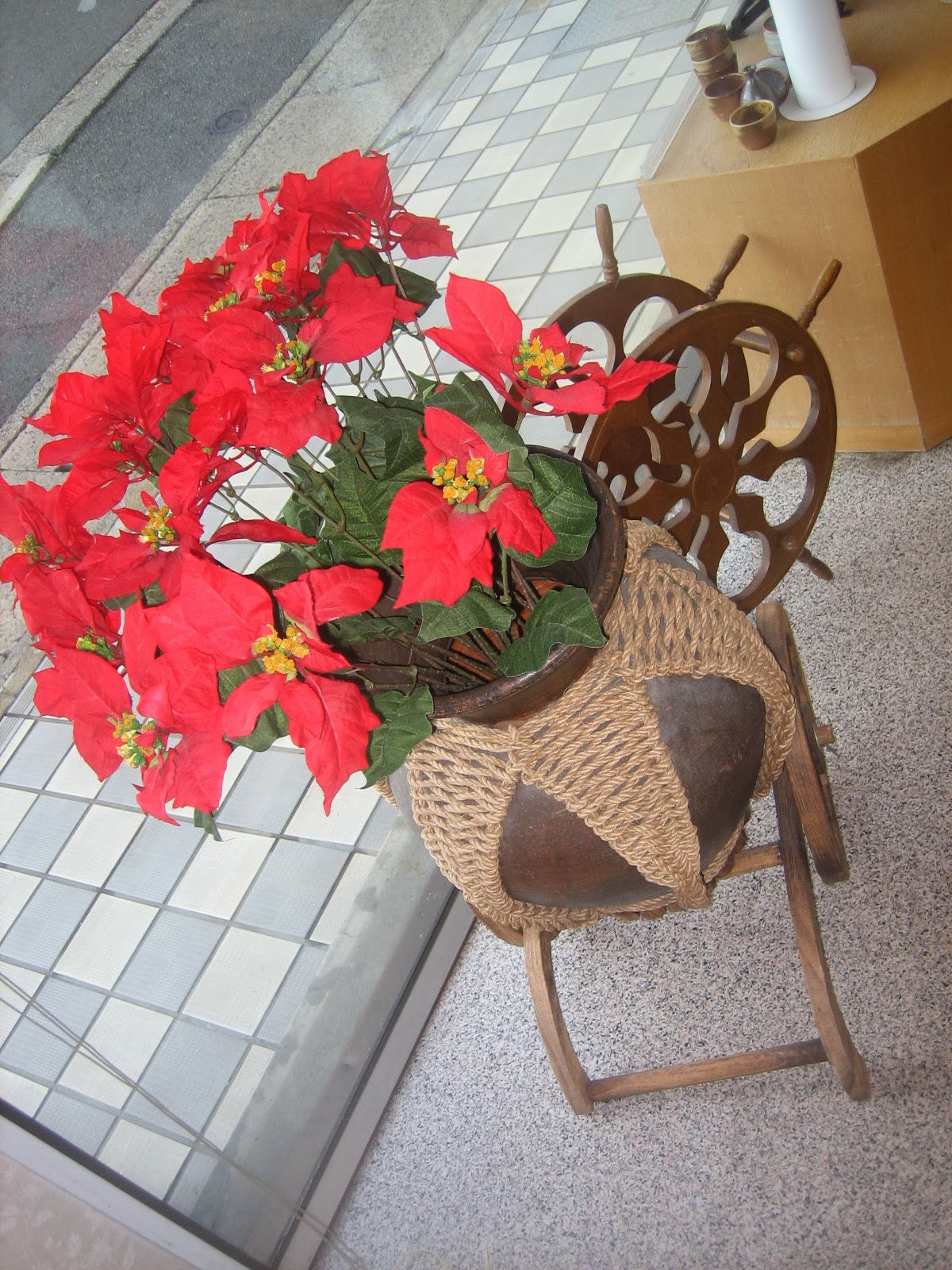 造花 変りまひた。ポンセチアです。Christmasのディスプレイはまだですが 近々treeがお目見えします!