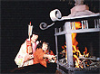 疫病を薬草のオケラを焚いた煙で追い払うという古代信仰が、今に続いているのでしょうか。28日の鑚火式できりだされ、「をけら灯籠」に移された「をけら火」を吉兆縄に移し、消えないようにくるくると回しながら家に持ち帰り、お雑煮の火種にすると1年間の無病息災が叶うと言われています。