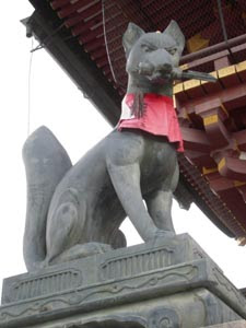 伏見大社の狛狐 先日 伏見大社の狛狐の話が出まして、検証しに行って参りました。普通 狛狐は巻物とか 玉とか 稲穂とか 咥えてるイメージですが ここの1匹(?)は 鍵を咥えてるんですよ。ご存知でした?奥へ進んで行くと 更に 狛狐に遭遇しますが、鍵を咥えてるのはこの1匹(?)だけです。全国のお稲荷さんの狛狐さんは どうなんでしょうね????? 2008年10月28日 10:26