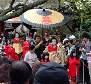 京都島原には太夫さんが現存します。今 大河ドラマでやっている時代に新撰組が入り浸っていたという島原の太夫さんは 正五位下という位を持ち、いっぱしのお侍さんより位の高い人たちでした。その代わり 鳴り物、お茶のお点前、和歌、書、お花など 上流階級の女性並の習い事をこなし、宮さんたちのお相手をするだけの教養がありました。伊藤博文氏の奥様も もと太夫さんだそうです^^で、昨日は 宮本武蔵で有名な 吉野太夫のお墓参り太夫道中がございました。写真の太夫さんは「薄雲太夫」と「如月太夫」です。