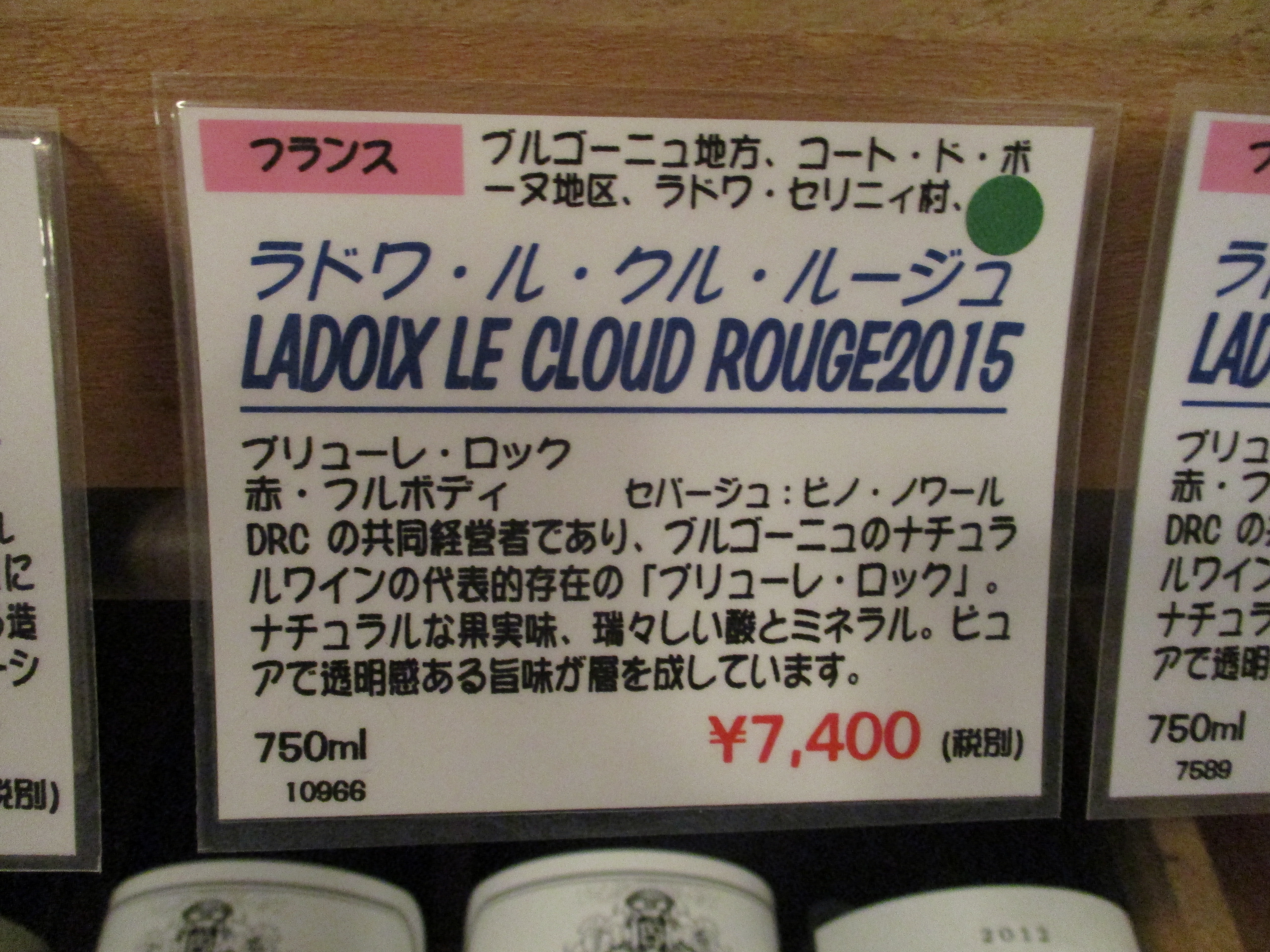 以前は 在庫1本 というマークだった 右肩のシール。今回は 自然派という意味です。