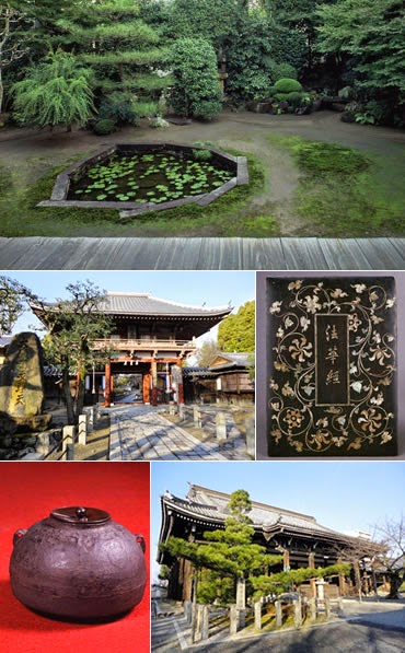 室町時代に日親上人が創建した日蓮宗本山の一つ。桃山時代から江戸時代にかけて、書画、陶芸や茶の湯など多岐にわたる才能を発揮した芸術家・本阿弥光悦の菩提寺で、光悦の作庭と伝わる斬新な図形的意匠がみどころの「巴の庭」(名勝)が残る。今回は、夜光貝の細工が美しい光悦作「花唐草螺鈿経箱(はなからくさらでんきょうばこ)」(重文)や赤楽の馬上杯、翁面など光悦ゆかりの寺宝とあわせて、長谷川等伯の絵画など寺宝も特別展示される。